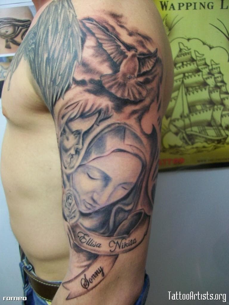 Top 100 Religious Tattoos Ideas Designs And Sketches Inkedway from inkedway.com The tattoos are sure to enlighten your divine spirit. Sleeve tattoo japanese style on a hand men. See more ideas about religious tattoo, religious tattoo sleeves, religious tattoos. Half sleeve tattoos are the perfect choice for. The dove represents a holy spirit, and it is meant to be a symbol of purity. Religious christian sleeve tattoo for men. The roses appear below the skull or fill in the gaps of your whole arm. Various forms of religious tattoos are practiced throughout the world, which covers faiths such as christianity, buddhism, hinduism and islam.